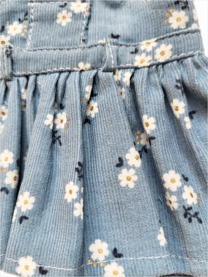 A corduroy skirt with suspenders