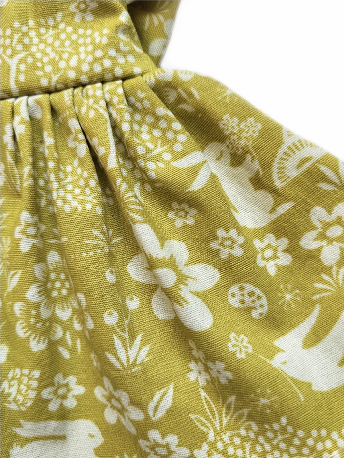 An apron dress with meadow pattern