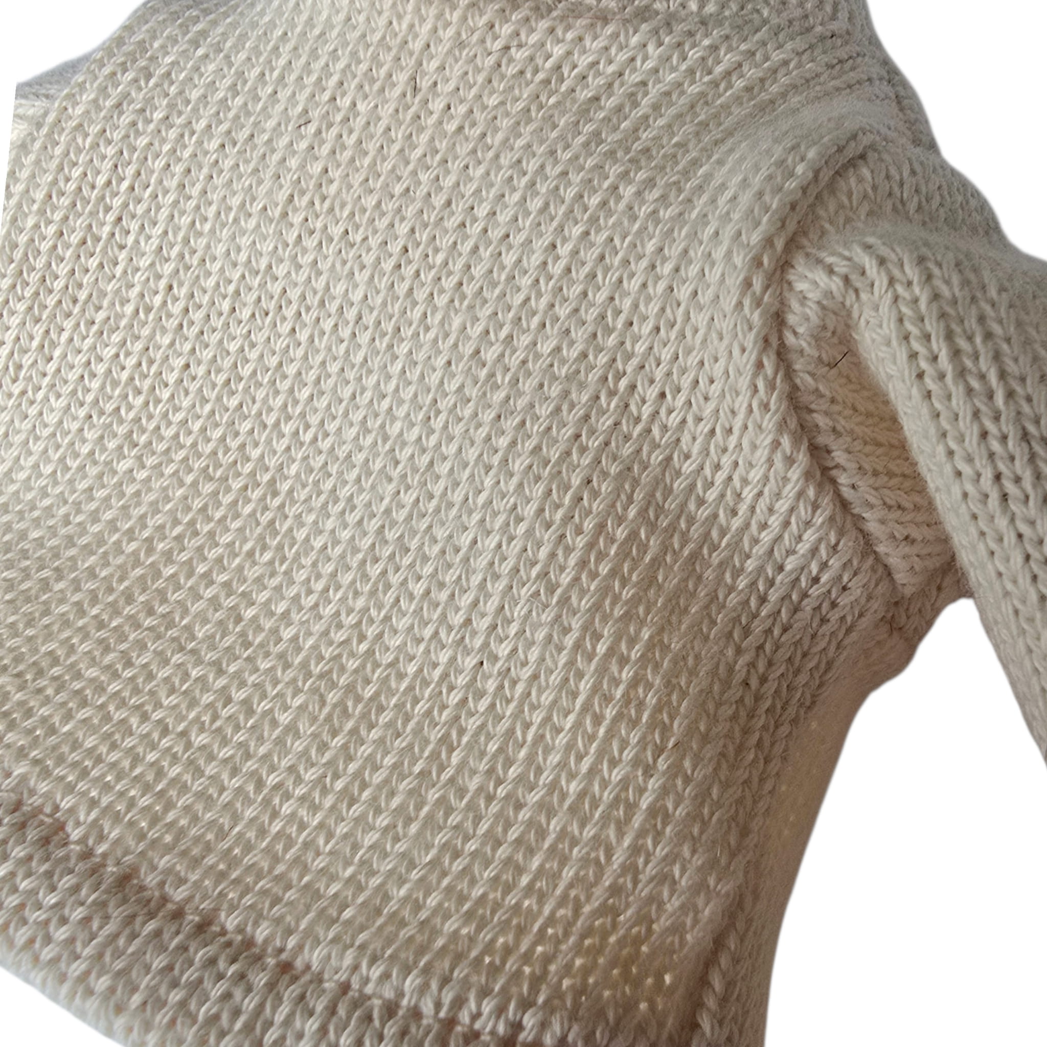 A light beige long-sleeved organic cotton blouse.