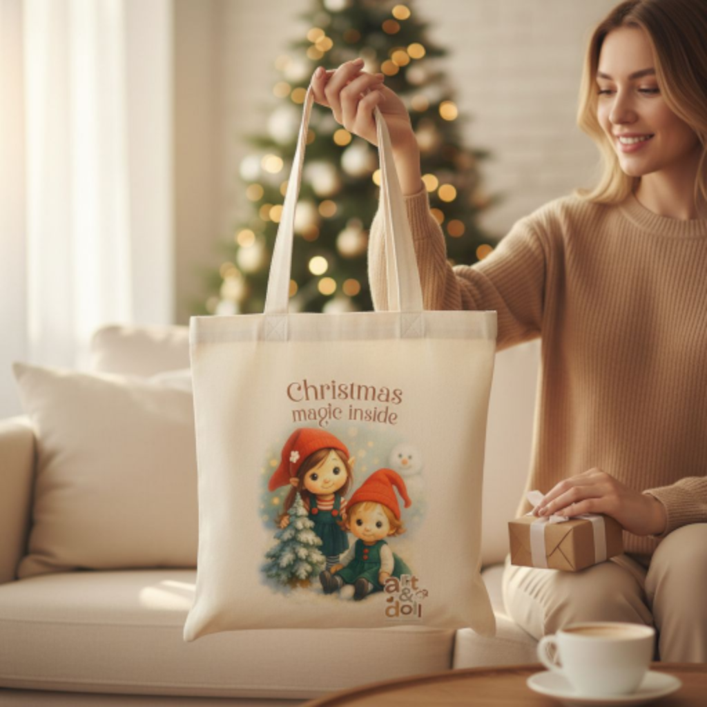 Ecological cotton bag with a Christmas motif and an Art&Doll?
