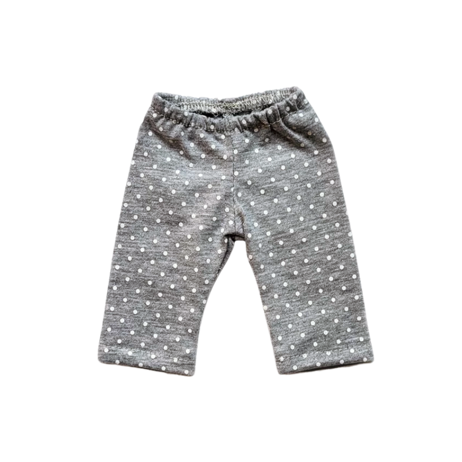 3/4 length grey cotton leggings with white dots for a doll are a perfect complement to every doll's garment.