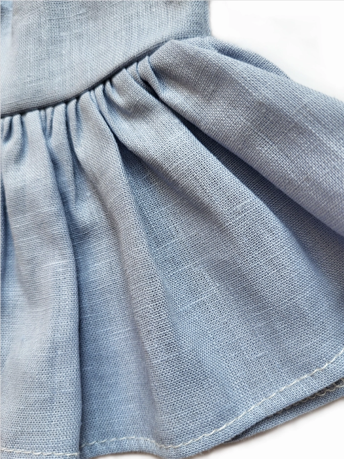 A delicate linen and cotton dress. It will certainly please not one child or a doll! The natural linen fabric is safe for children's delicate hands and the beautiful blue colour of the dress makes one think of a summer sky. We recommend this item as a complement to the summer garment.